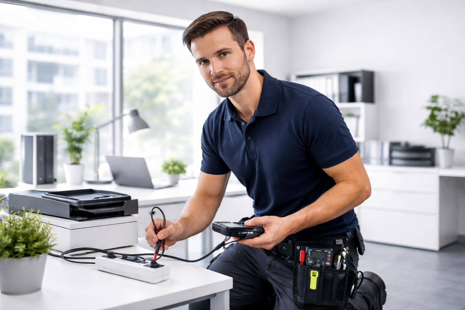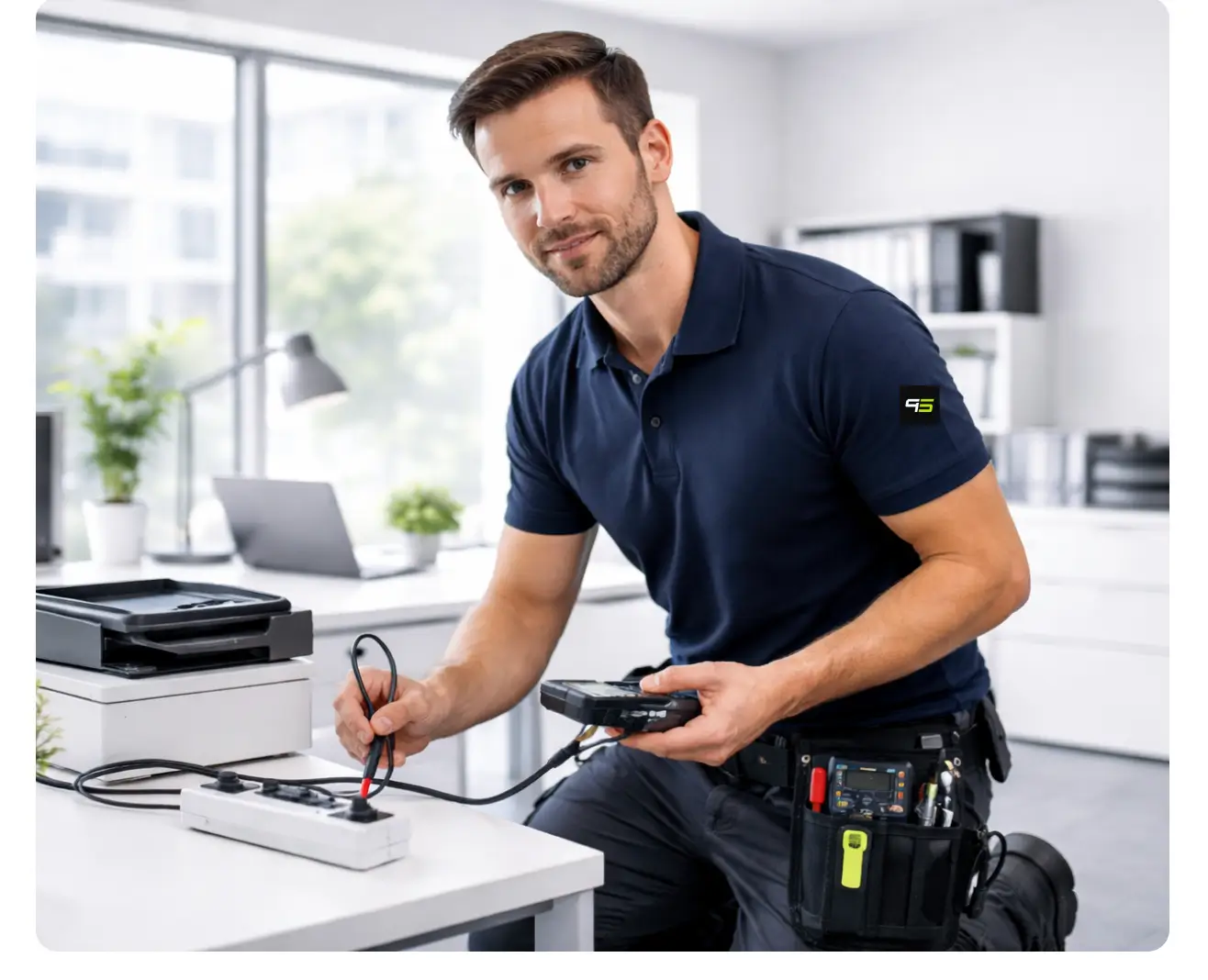 Wir prüfen unter anderem Geräte in Büros, Werkstätten, Lagern und Industrie, wie Maschinen, IT-Equipment, Verlängerungsleitungen und Mehrfachsteckdosen.